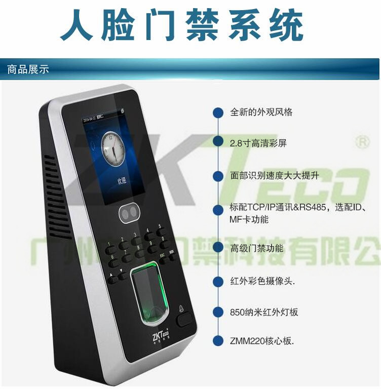 iFace3采用熵基科技ZKFace 7.0高速面部識別算法,誤判率低,識別速度超快,高分辨率夜視紅外燈和專業(yè)彩色雙攝像頭,無論在何種環(huán)境中也能有效識別。該系列運行于全新的ZMM221平臺,CPU主頻達1.0Ghz,硬件平臺速度更快,且優(yōu)化面部識別速度、固件性能;該產(chǎn)品同時采用了熵基科技架構(gòu)的固件,具備靈活的權(quán)限設(shè)置及便捷的數(shù)據(jù)管理功能;標配TCP/IP通訊方式,支持跨網(wǎng)段跨網(wǎng)關(guān)連接。