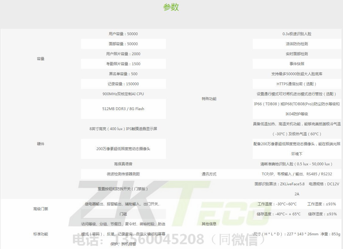 TDB08是中控智慧可見光產(chǎn)品系列的全面升級版本,適用各種場景。TDB08搭配最新定制的AI CPU,用于運行面部識別算法,以提高其各方面的性能。配備強大的CPU和最新AI深度自主學習面部識別算法,揭開生物識別領(lǐng)域新篇章。此版本支持最多50,000張人臉底庫,人臉識別速度小于0.3秒,采用雙目光電硬件+活體識別算法,對打印的高清人臉圖片、照片、人臉圖像視頻以及各種材料面具的攻擊,具有較強的防偽能力。除強大的CPU和人臉算法,TDB08還配備了最新的超低照度寬動態(tài)攝像頭,使終端能夠在極暗環(huán)境下(0.5 lux)進行人臉識別,同時應(yīng)用微波探測器,精確計算用戶與設(shè)備之間的距離,從而喚醒識別終端。設(shè)計堅固耐用,可在極端天氣下正常運作,能夠完美抵御極冷氣溫(-30°C)及極熱氣溫(60°C);可達到IP66(TDB08)或IP68(TDB08(Pro))防塵防水標準及IK04防護等級標準,增強其戶外耐用性。