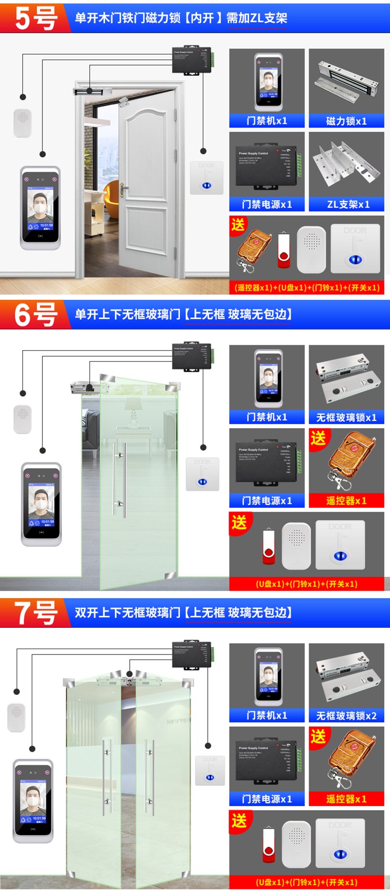 動態人臉識別考勤門禁一體機 面部簽到打卡機 門禁系統套裝辦公室木門鐵門玻璃門磁力鎖電插鎖